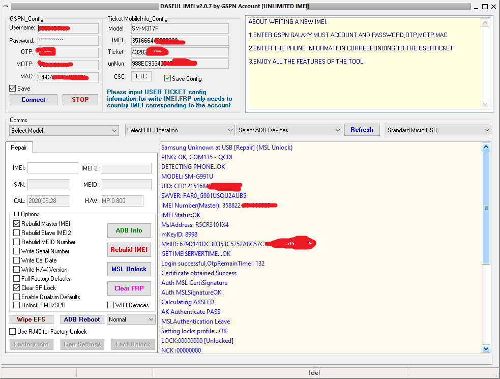 DASEUL Samsung Official Software for Live Demo Unit IMEI Repair & Network Unlock